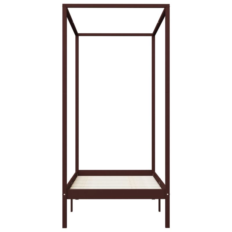 Рамка за легло с балдахин, тъмнокафява, бор масив, 100x200 см