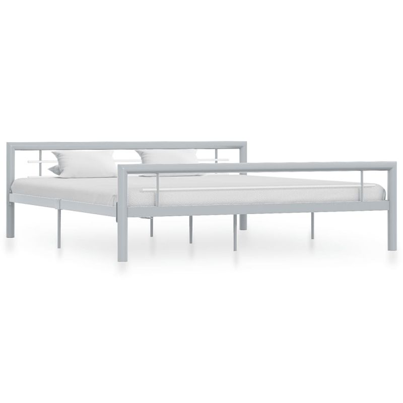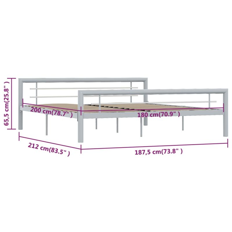 Рамка за легло, сиво и бяло, метал, 180x200 cм