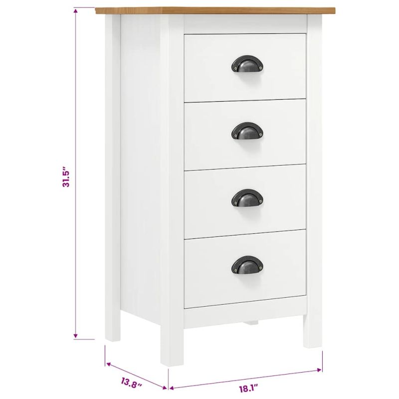 Сайдборд Hill бял 46x35x80 см борово дърво масив