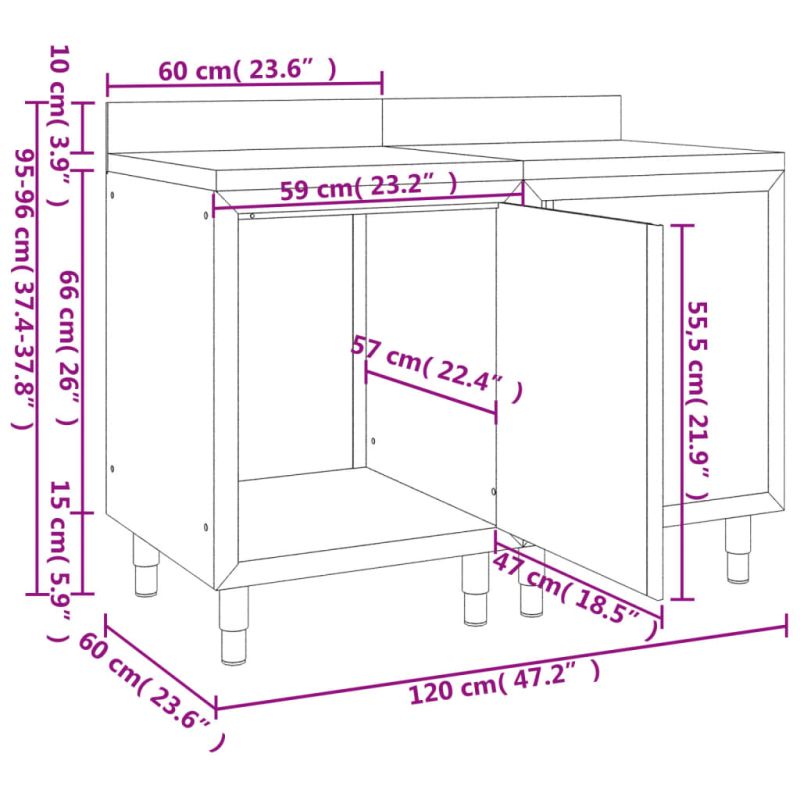 Търговска работна маса с шкаф 120x60x96 см неръждаема стомана