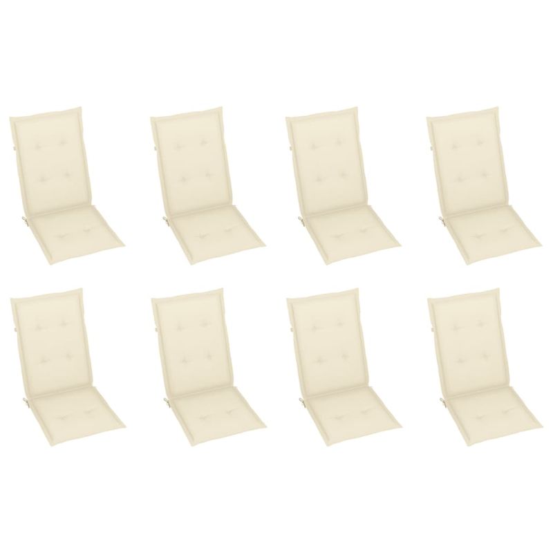 Този комплект стилни градински столове от тиково дърво с възглавници ще бъде чудесно допълнение към вашата градина, тераса или вътрешен двор. Той е удобен за разговори със семейство и приятели или просто да се насладите на приятното време в градината. Сгъваемият и накланящ дървен стол е с класически дизайн. Изградена от изключително издръжлива тикова твърда дървесина, тази мебел от тиково дърво е обработена, изсушена в пещ и след това фино шлифована, за да ѝ се придаде много гладък вид. Тиковото дърво е известно със своята изключителна здравина и устойчивост на атмосферни влияния, което го прави далеч по-подходящо за градински мебели от всеки друг вид дърво. Тиковото дърво е идеалният избор, ако искате да закупите устойчиви градински мебели. Облегалката на фотьойла може да се регулира в 7 наклонени позиции, така че винаги да намерите най-удобната поза. Освен това е лек, което улеснява преместването. Трапезният стол може да бъде сгънат, за да пести място, когато не се използва. Нещо повече, включените възглавници осигуряват допълнителен комфорт. Всяка възглавница е снабдена с ластик и два комплекта връзки за плътно фиксиране към стола. Забележка: За да удължите живота на вашите градински мебели, ви препоръчваме да ги защитите с водоустойчиво покритие. Максимално 110 кг на седалка.