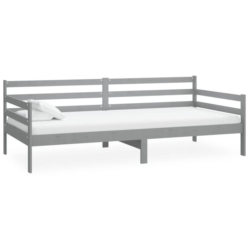 Дневно легло с матрак, 90x200 см, сиво, борово дърво масив