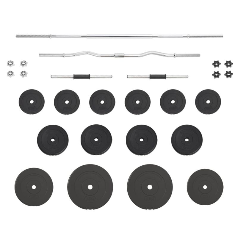 Този универсален комплект щанги и дъмбели с тежести е перфектен избор за онези, които търсят разнообразни възможности за тренировка. Издръжлив материал: Изработена от хромирана стомана, щангата със сигурност е здрава и стабилна. Освен това плочата на щангата е изработена от цимент и покрита със здрава, безопасна за пода пластмаса. Това ви позволява да не усещате досадни тракащи звуци на тежестите.Комплект от различни тежести: Лесно се прави подходяща комбинация с 4 различни тежести: 4 x 2,5 кг, 6 x 1,25 кг, 2 x 5 кг, 2 х 10 кг. Различните комплекти тежести винаги могат да посрещнат различните ви тренировъчни нужди.Ясно щамповано тегло: Теглото е ясно щамповано върху всеки диск с тежести за бързо и лесно идентифициране.Мултифункционален дъмбел: Мултифункционалният комплект щанги е подходящ за тренировка на мускулите на гърдите, бицепсите, ръцете, трицепсите и гърба.Практично звездообразно заключване: Звездообразните ключалки гарантират, че тежестите остават здраво на място. Забележка:Всеки продукт се доставя с ръководство за сглобяване в кашона за лесно сглобяване.