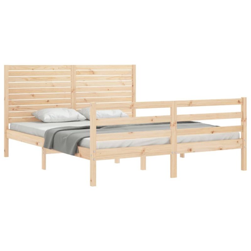 Насладете се на добър нощен сън с тази дървена рамка за легло! Тя ще бъде практично и декоративно допълнение към вашия интериор. Издръжлив материал: Масивната борова дървесина е красив естествен материал. Боровата дървесина е с продълговати шарки, а чеповете придават на материала характерния му рустик вид. Изработено от масивна борова дървесина, това легло е здраво и издръжливо.Шперплатови ламели: Шперплатовите ламели осигуряват добро разпределение на тежестта, осигурявайки на вашия матрак така необходимата опора и дишане.Функционални табла за глава и табла за крака: Горната и долната табла на дървеното легло държат вашия матрак на мястото му. Освен това таблата ви осигурява отлична опора за гърба, когато седите в леглото, за да четете или гледате телевизия. Добре е да се знае: Към това легло не е включен матрак. Ние предлагаме разнообразна селекция от матраци. Можете да проверите нашия магазин за подходящ матрак.Някои части на таблата са опаковани в картонени кутии на рамката на леглото поради ограничения в пространството.