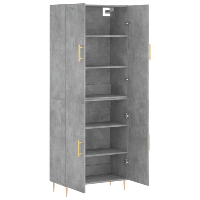 Висок шкаф, бетонно сив, 69,5x34x180 см, инженерно дърво