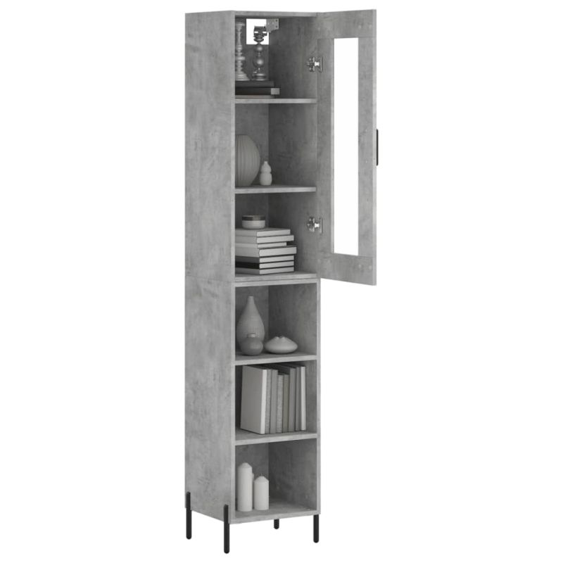 Висок шкаф, бетонно сив, 34,5x34x180 см, инженерно дърво