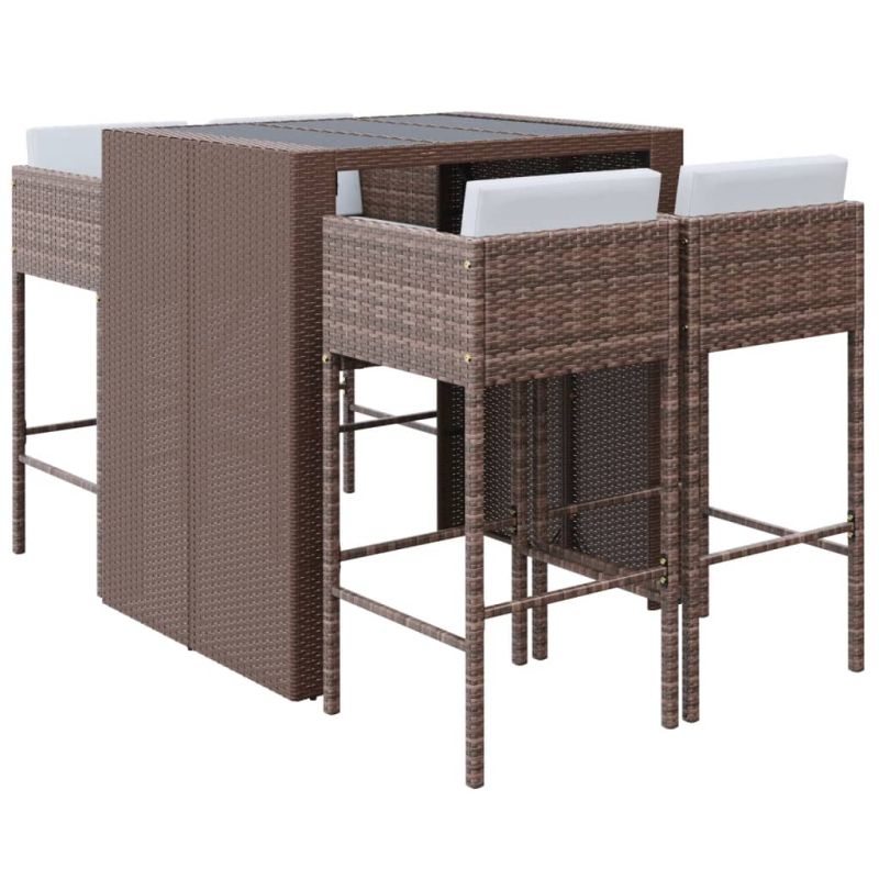 Начало Дом и градина Мебели Външни мебели Комплекти градински мебели Градински бар комплект с възглавници 5 части кафяв полиратан