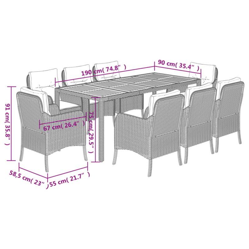 Градински трапезен комплект 9 части с възглавници сив полиратан