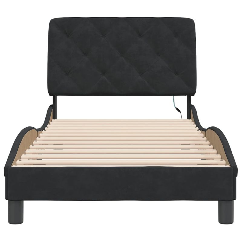 Рамка за легло с LED осветление без матрак, черна, 90x200 см, кадифе