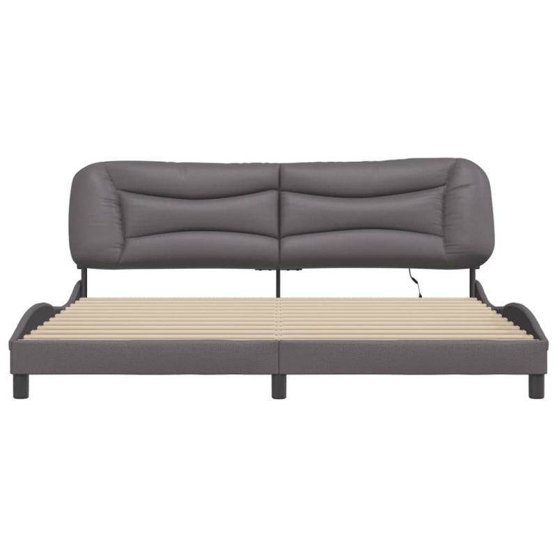 Осигурете си по-добър спокоен нощен сън с тази рамка за легло с LED осветление! Тя представлява приветливо допълнение към всяка спалня. Издържлива изкуствена кожа: Първокласната изкуствена кожа е изключително издръжлив материал. Устойчива е на петна, което я прави лесна за почистване с влажна кърпа. Гладката повърхност също така придава луксозен вид и красотата на истинската кожа.Ламели от шперплат: Ламелите от шперплат осигуряват добро разпределение на теглото, като гарантират, че матракът остава на място при всяко завъртане на тялото ви по време на сън.Отлична опора: Горната част на леглото ви осигурява отлична опора за гърба, докато седите в леглото, за да четете или гледате телевизия.Цветна LED лента: Внесете игриви нотки в тъмнината с цветни LED светлини! Закопчалките на гърба на възглавницата на таблата могат да се използват за фиксиране на LED светлините.Вълнообразен страничен дизайн: Вълнообразният дизайн на рамката на леглото е стилен и изискан, добавя модерен и елегантен щрих към вашия декор, превръщайки го във фокусна точка на вашата спалня. Добре е да се знае:Към това легло не е включен матрак. Ние предлагаме разнообразна селекция от матраци. Можете да проверите нашия магазин за подходящ матрак.Продуктът има USB конектор, който изисква сертифициран 5V USB захранващ източник (не е включен).