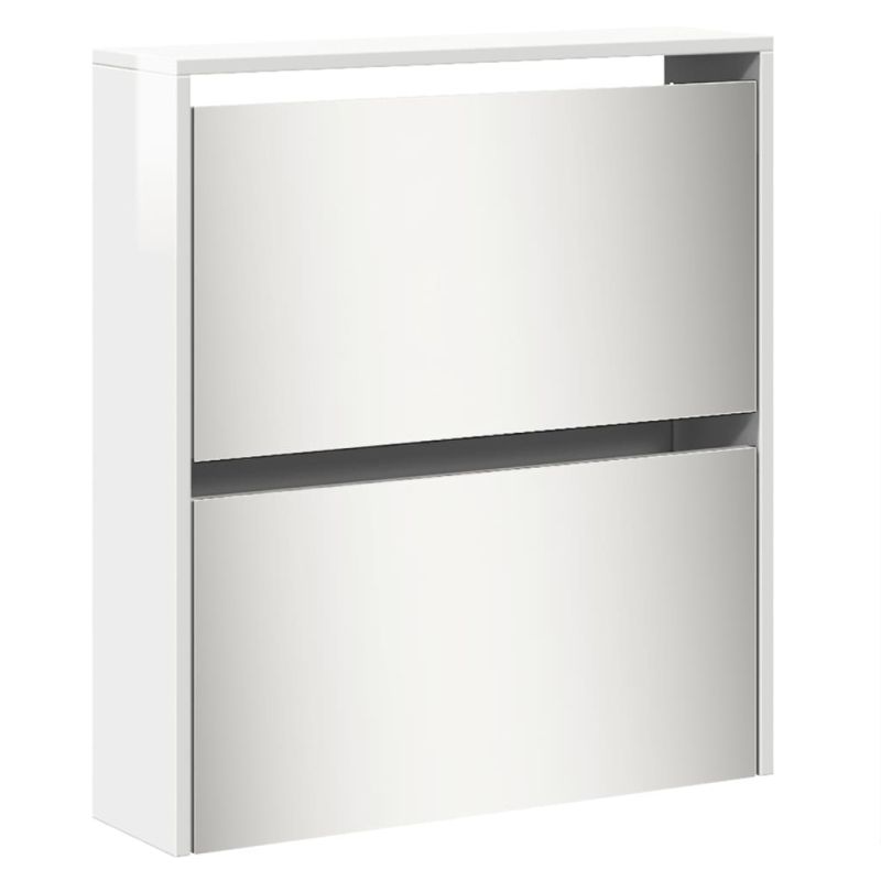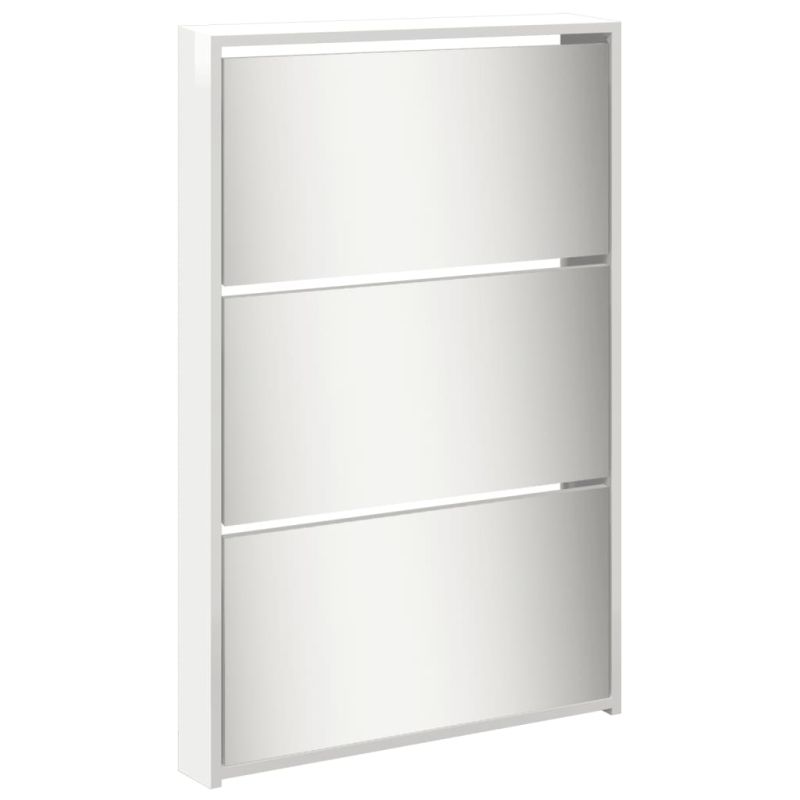 Шкаф за обувки с огледало, 5 нива, бял гланц, 63x17x169,5 см