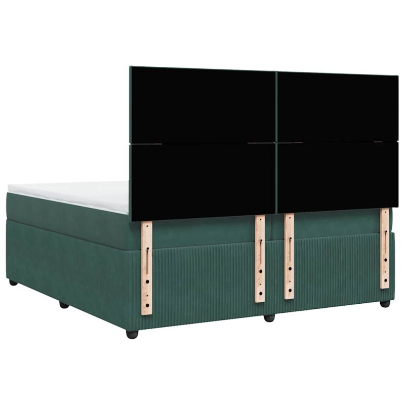 Боксспринг легло с матрак, тъмнозелено, 200x200 см, кадифе