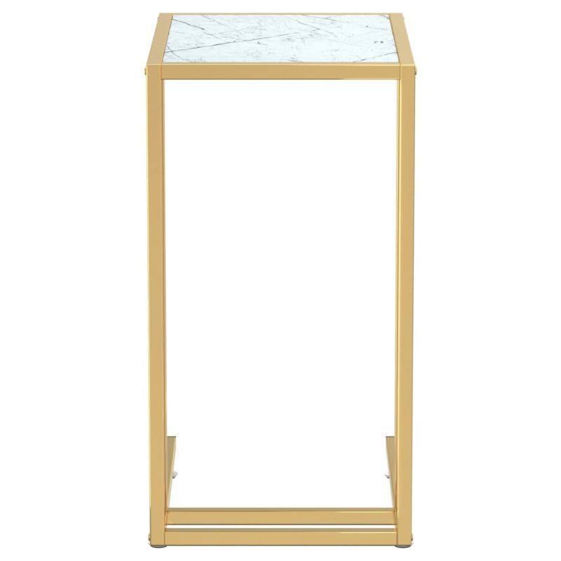 Странична маса за компютър, бял мрамор, 50x35x65 см, стъкло