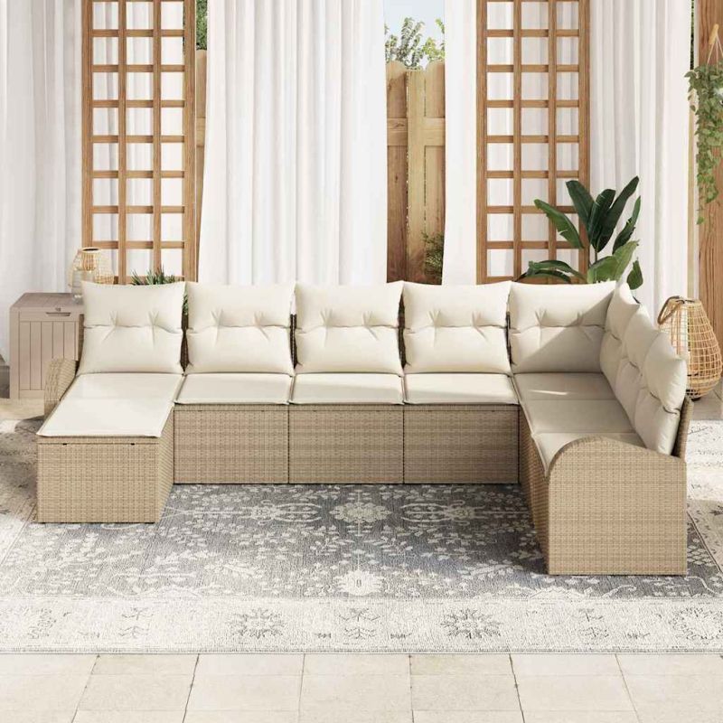 Комплект дивани с възглавница 8 pcs Бежов и бял полиратан