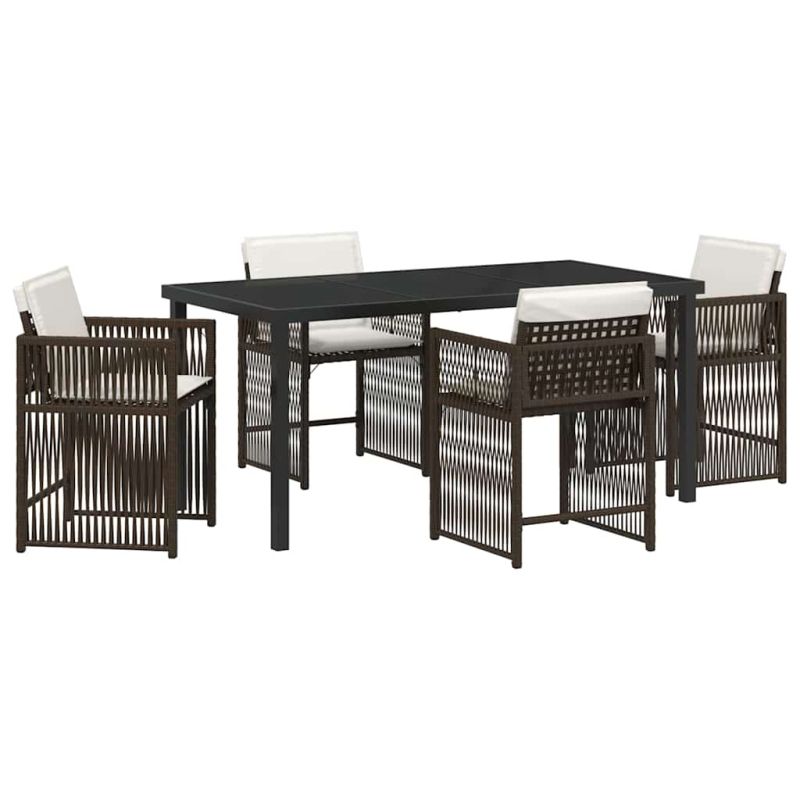 Комплект за хранене в градината 5 pcs Кафяво полиратан