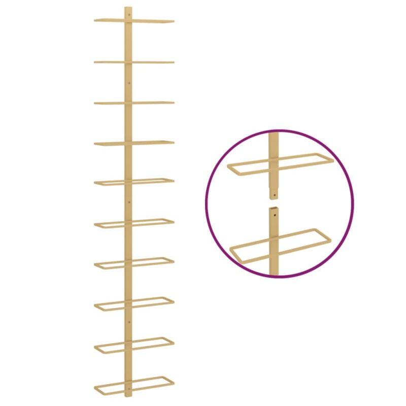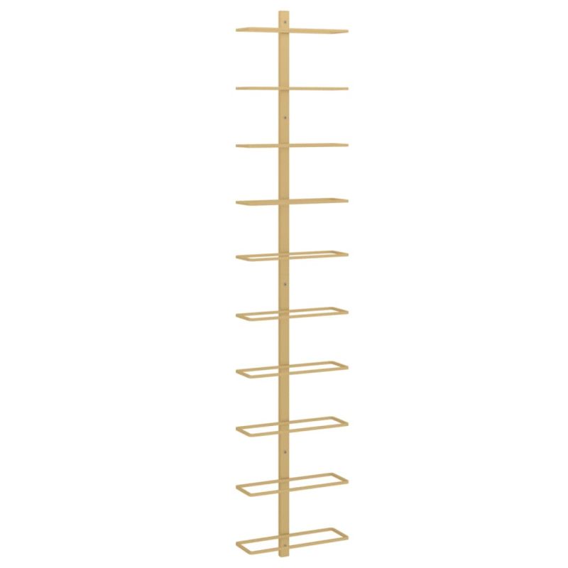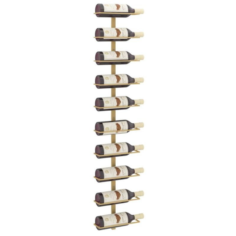 Стойка за вино за 10 бутилки, стенен монтаж, златиста, метал