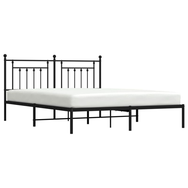 Метална рамка за легло с горна табла, черна, 180x200 см