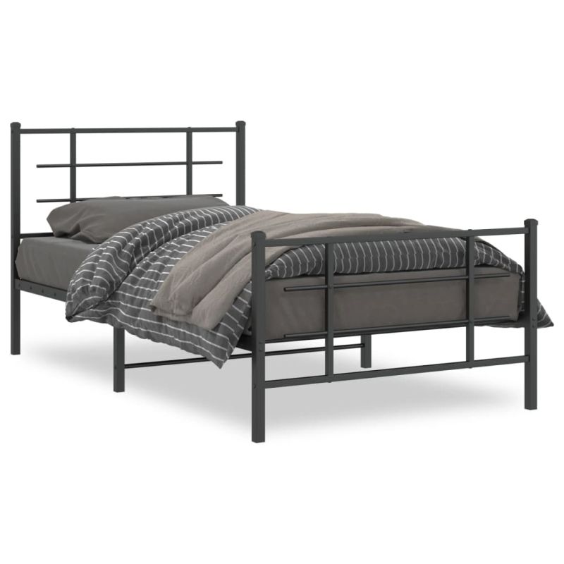 Метална рамка за легло с горна и долна табла, черна, 100x200 см