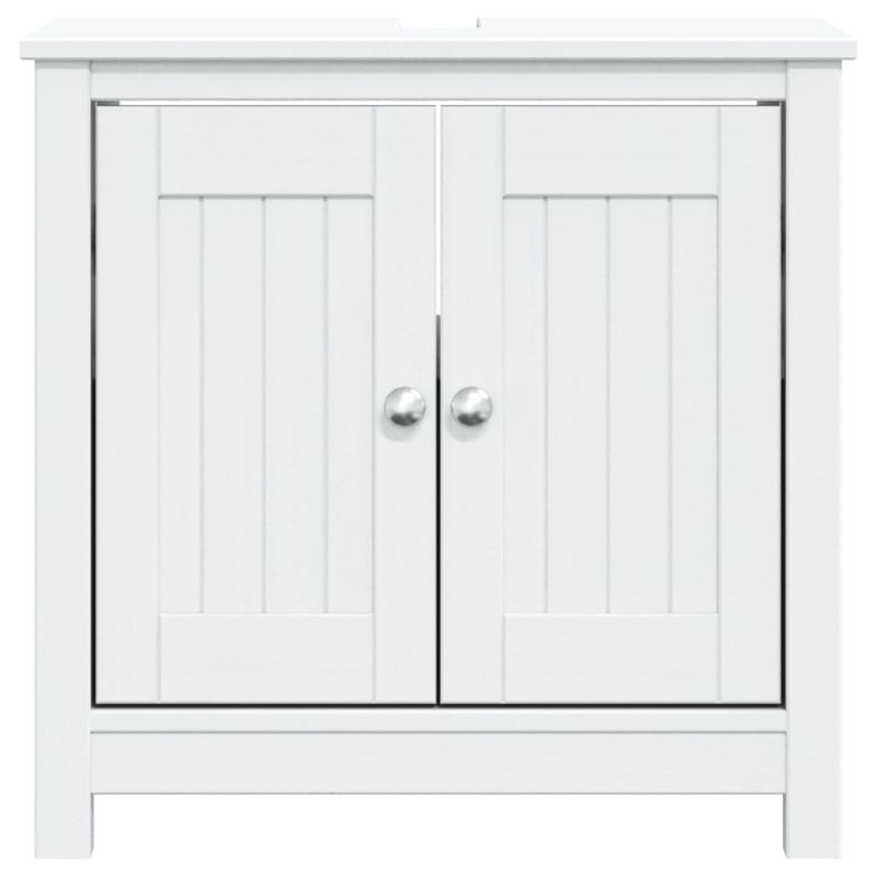 Шкаф за мивка за баня "BERG", бял, 60x34x59 см, бор масив