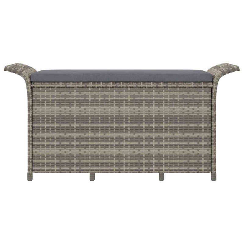 Градинска пейка с възглавница, сива, 116x46x57 см, полиратан