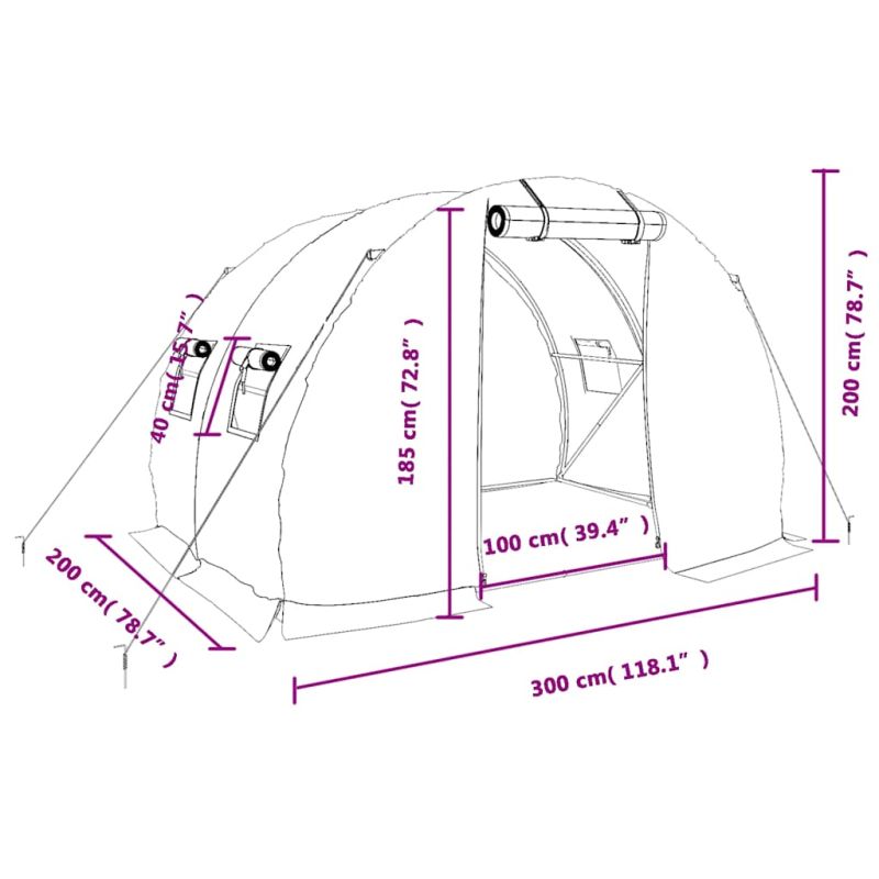 Оранжерия със стоманена рамка бяла 6 м² 3x2x2 м
