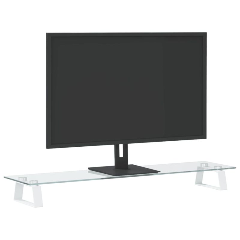 Стойка за монитор, бяла, 80x20x8 см, закалено стъкло и метал