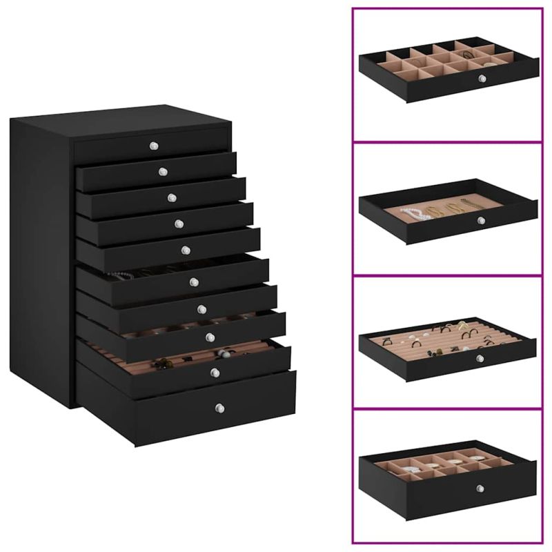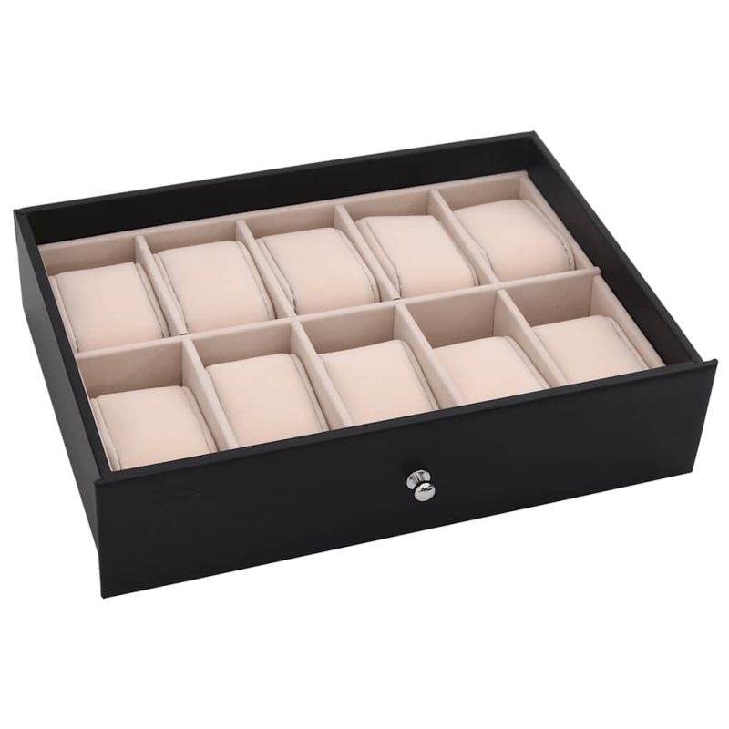 Кутия за бижута 10-слойна с държачи за часовници, черна, 29x20,5x40,5 см