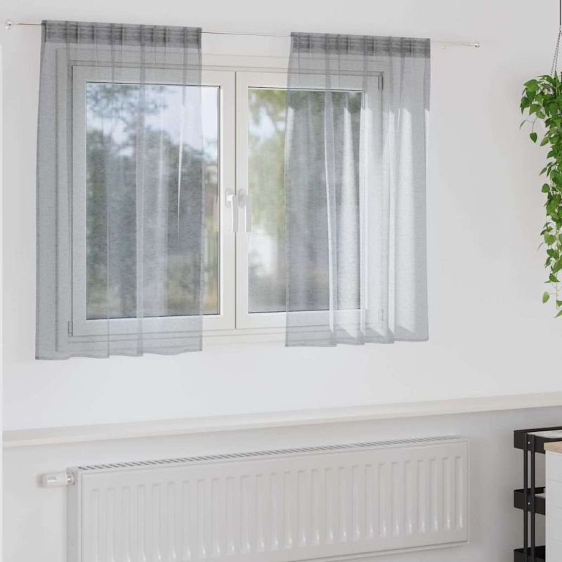 Перде от воал С завеси 2 pcs Тъмен сив 140 x 140 cm Полиестер