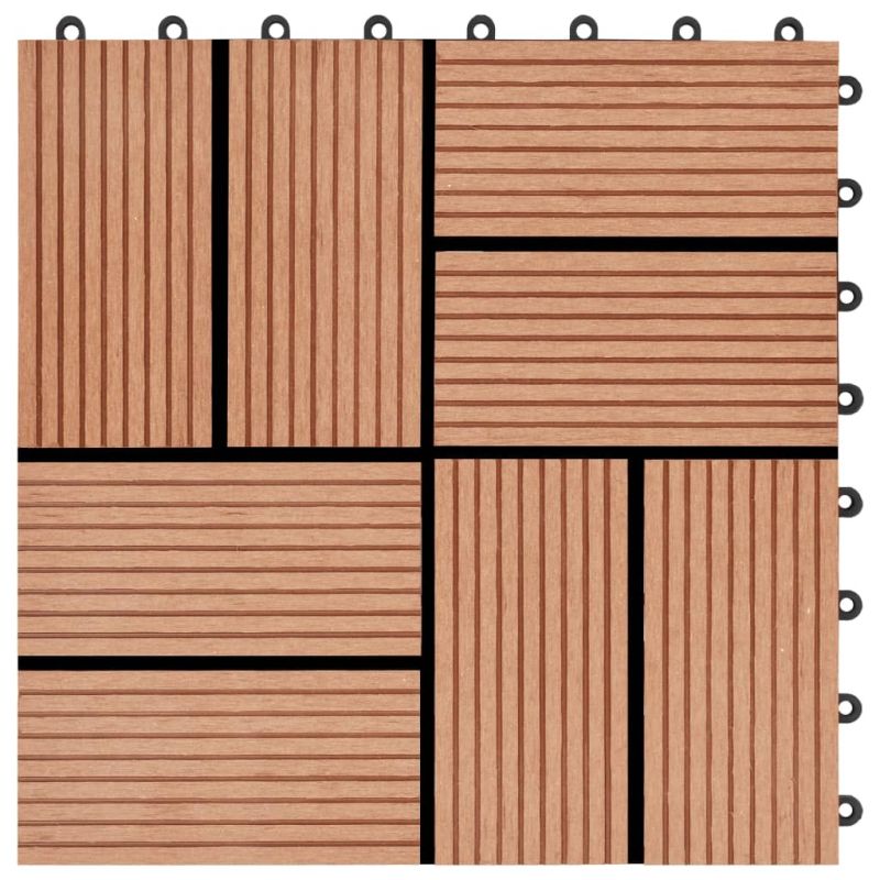 11 бр декинг плочки, WPC, 30x30 см, 1 кв.м., цвят тик