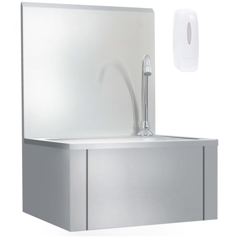Мивка за ръце с кранче и диспенсър за сапун, неръждаема стомана