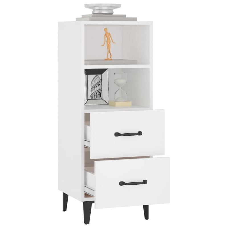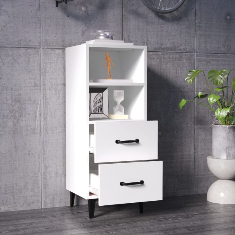 Сайдборд, бял, 34,5x34x90 см, инженерно дърво