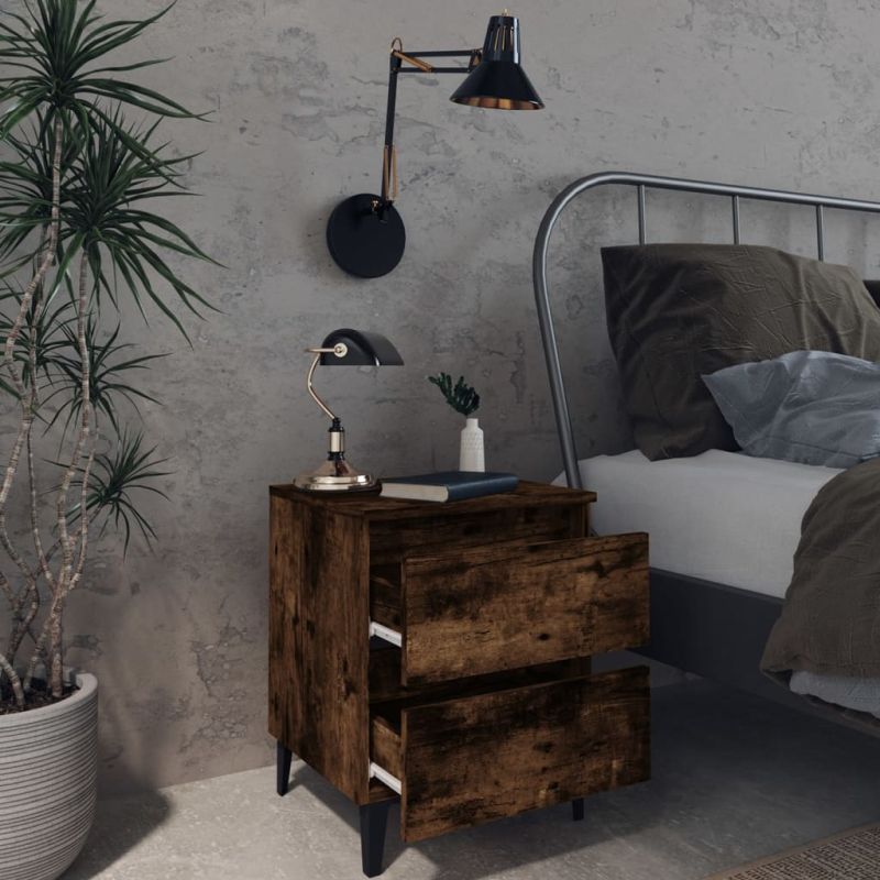 Нощно шкафче с метални крака, опушен дъб, 40x35x50 см