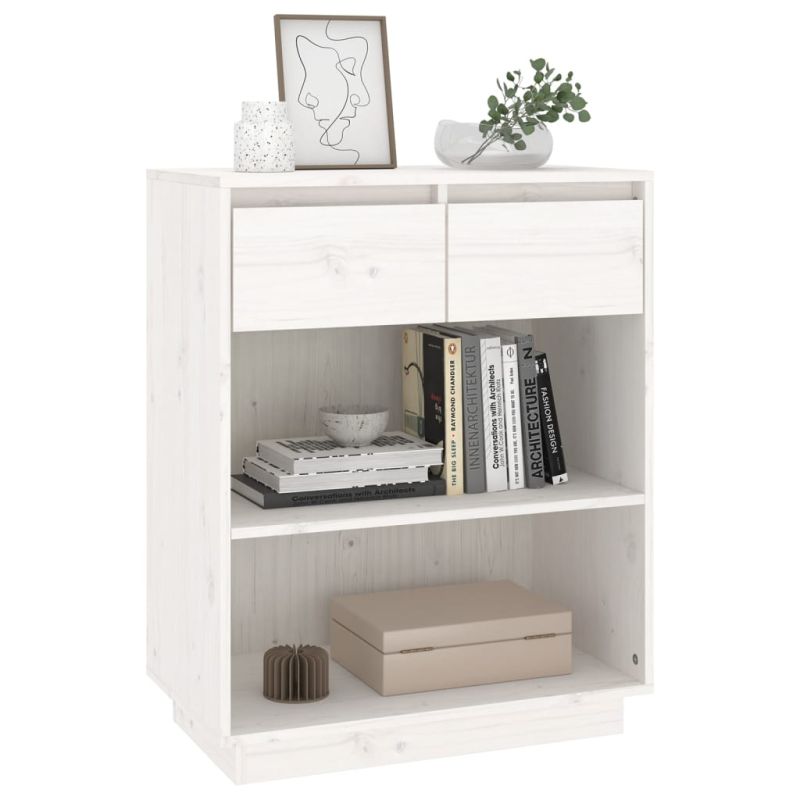 Конзолен шкаф, бял, 60x34x75 см, бор масив