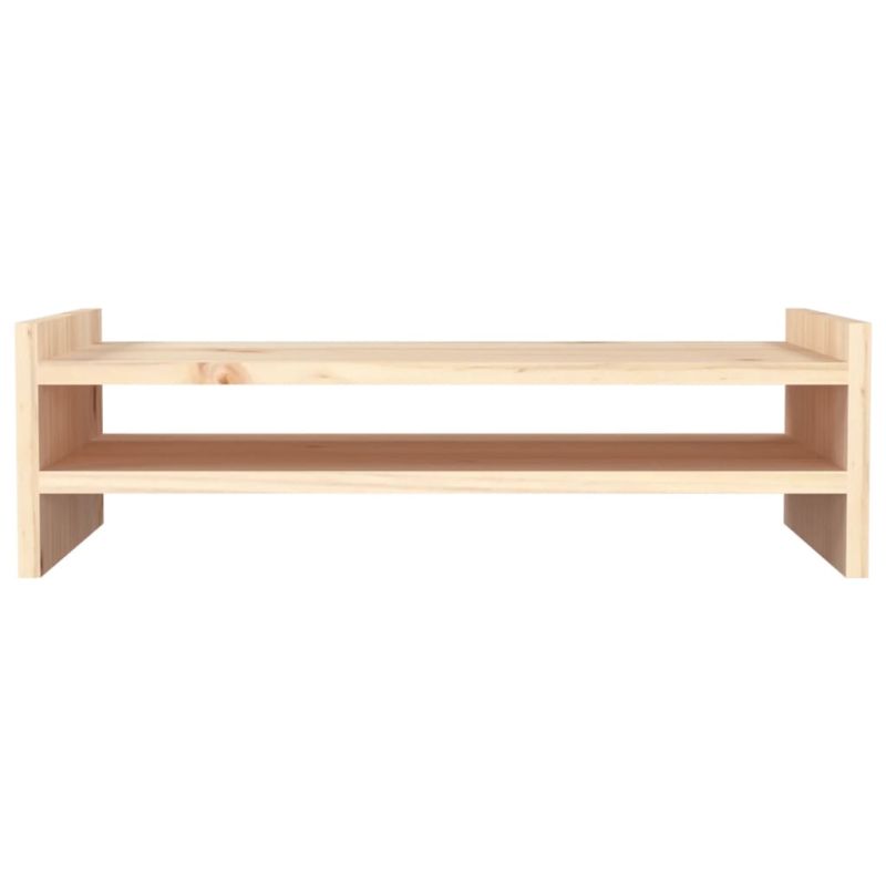 Тази класическа дървена поставка за монитор с минималистичен дизайн добавя красива нотка към жизненото ви пространство. Масивна борова дървесина: Масивната борова дървесина е красив естествен материал. Боровата дървесина има прави шарки, а възлите придават на материала характерния му рустик вид.Стабилна рамка: Дървената рамка на тази стойка за компютър гарантира здравина и стабилност.Място за съхранение: Пространството отдолу на стойката за монитор може да побере вашите клавиатура, DVD плейър, игрална конзола, стрийминг устройство, приемници, медийни носители, тетрадки, химикалки и подобни вещи.Функция за намаляване на натоварването: Стойката за компютър може да се използва за повдигане на вашия настолен монитор и други мултимедийни устройства. Повдигането на екрана ще намали напрежението върху врата и гърба. Забележка:Всеки продукт се доставя с ръководство за сглобяване в кашона за лесно сглобяване.