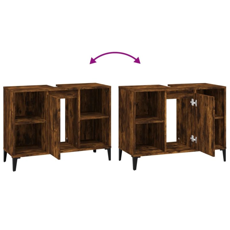 Шкаф за мивка, опушен дъб, 80x33x60 см, инженерно дърво