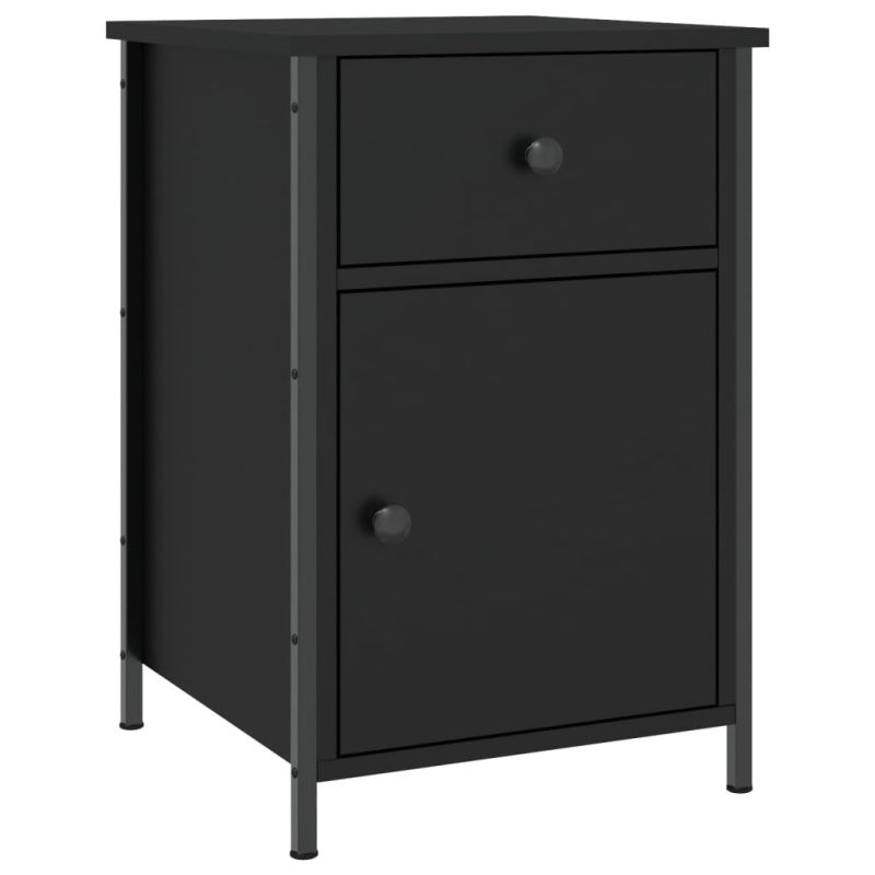 Нощно шкафче, черно, 40x42x60 см, инженерно дърво