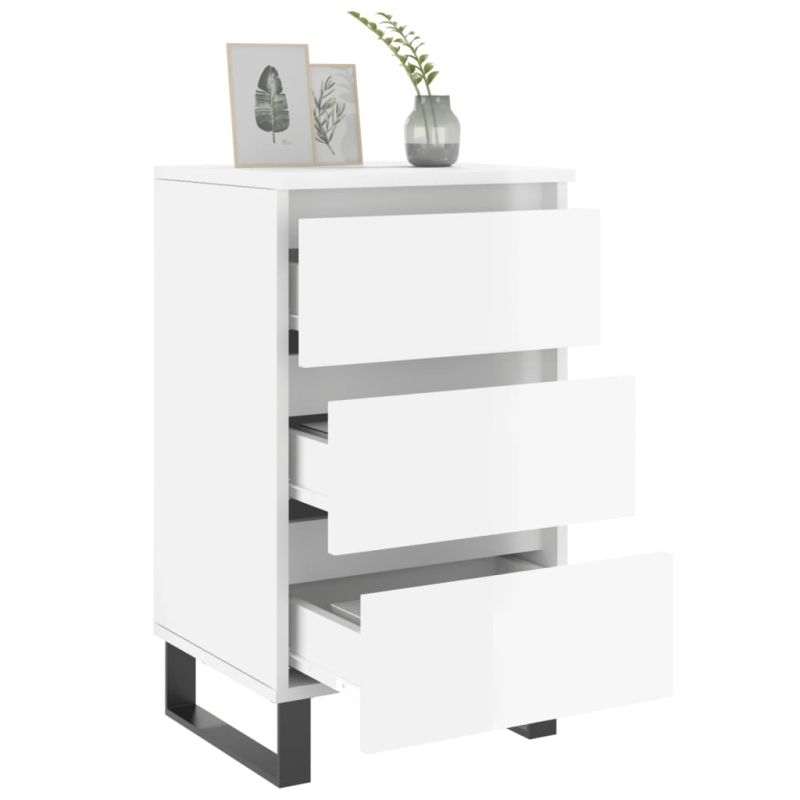Нощни шкафчета, 2 бр, бял гланц, 40x35x69 см, инженерно дърво