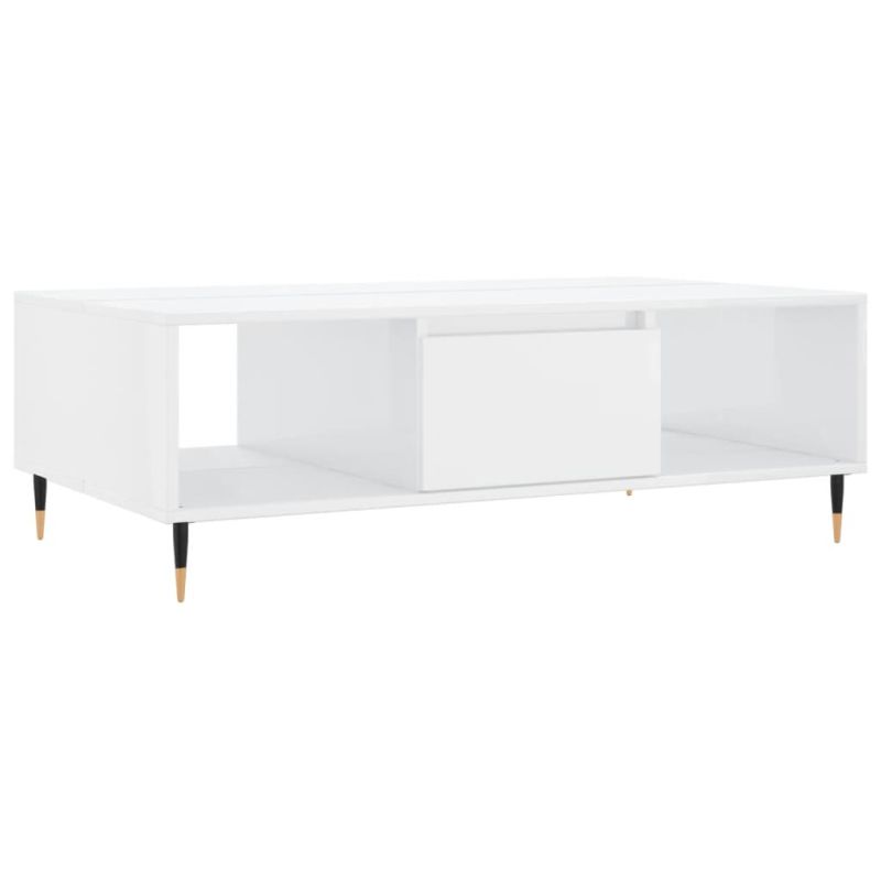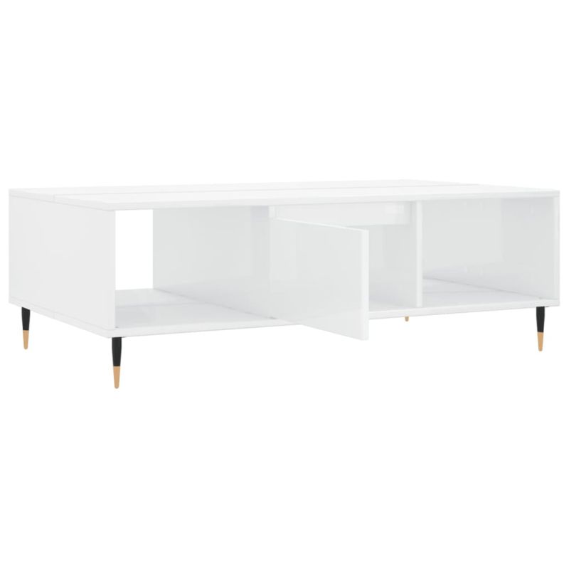 Кафе маса, бял гланц, 104x60x35 см, инженерно дърво