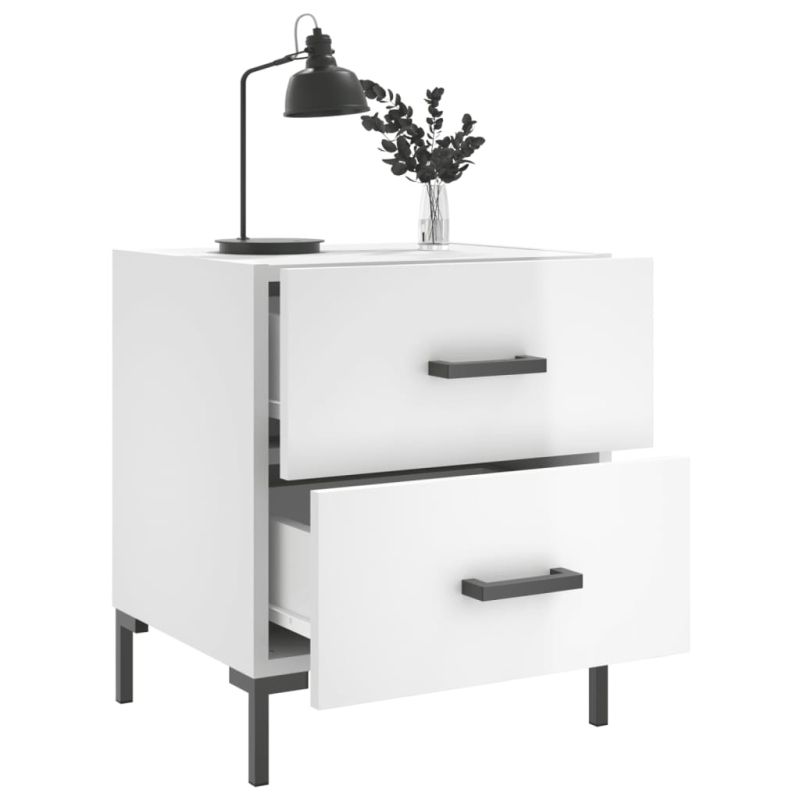 Нощни шкафчета, 2 бр, бял гланц, 40x35x47,5 см, инженерно дърво