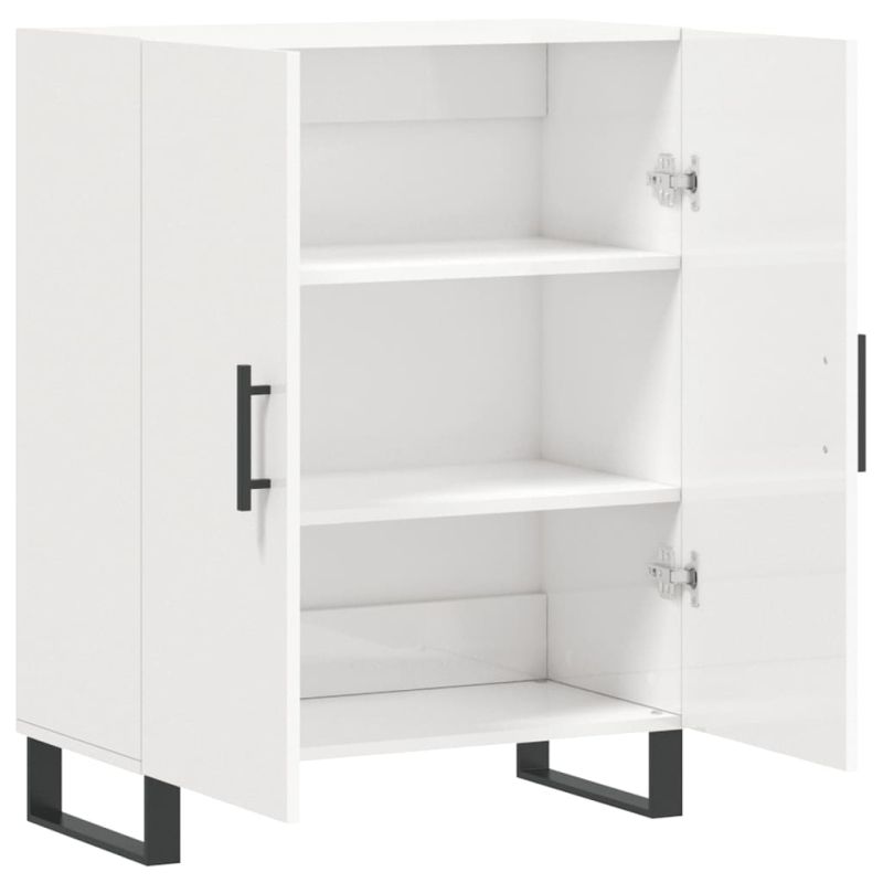 Сайдборд, бял гланц, 69,5x34x90 см, инженерно дърво