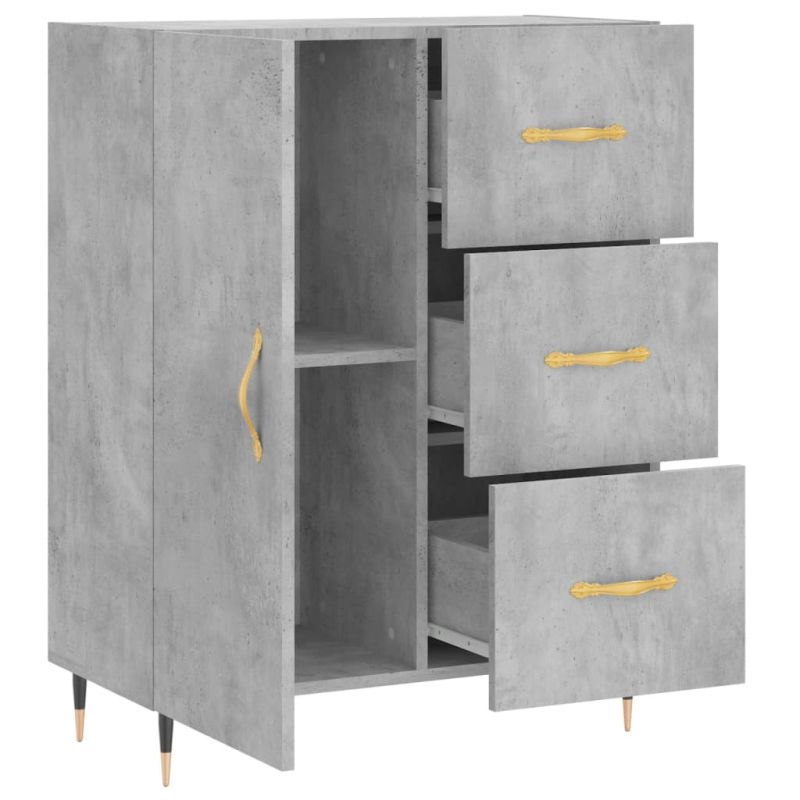 Сайдборд, бетонно сив, 69,5x34x90 см, инженерно дърво