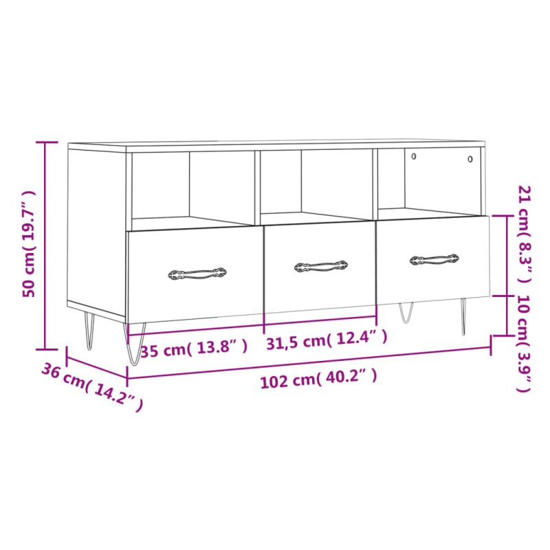 ТB шкаф, опушен дъб, 102x36x50 см, инженерно дърво