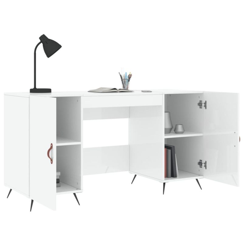 Бюро, бял гланц, 140x50x75 см, инженерно дърво