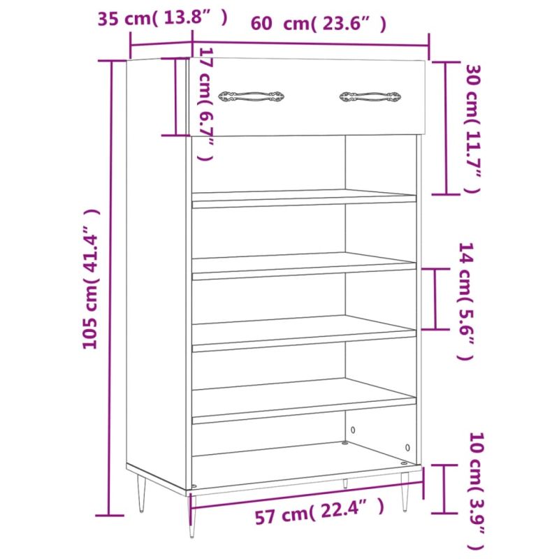 Шкаф за обувки, бял гланц, 60x35x105 см, инженерно дърво