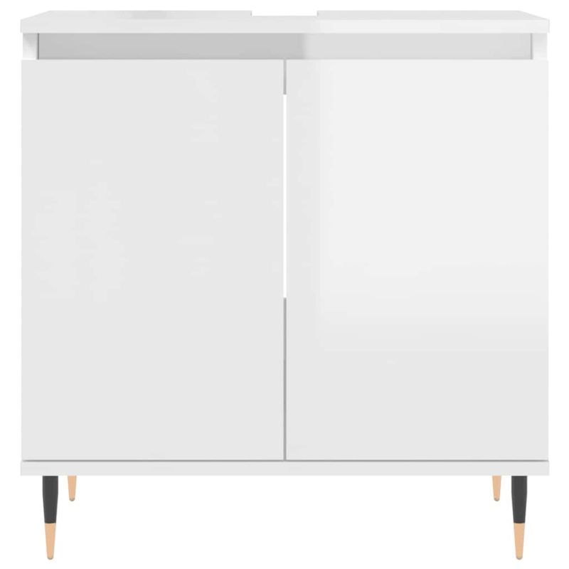 Шкаф за баня, бял гланц, 58x33x60 см, инженерно дърво