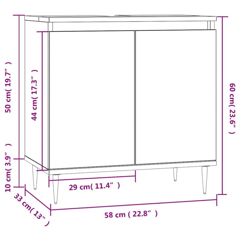 Този шкаф за баня е предназначен да бъде чудесно допълнение към вашата баня, придавайки ѝ подреден и красив вид! Издържлив материал: Инженерната дървесина е с изключително качество с гладка повърхност и също така се отличава със здравина, стабилност и устойчивост на влага.Достатъчно място за съхранение: Модулът за баня има 1 голямо отделение с 2 врати, предлагайки достатъчно пространство за съхранение на вещи в банята.Железни крака: Железните крака добавят индустриален стил към вашия интериор, като същевременно гарантират стабилността на шкафа за съхранение в банята. Внимание:За предотвратяване на преобръщане този продукт трябва да се използва с предоставения анкер за стена.