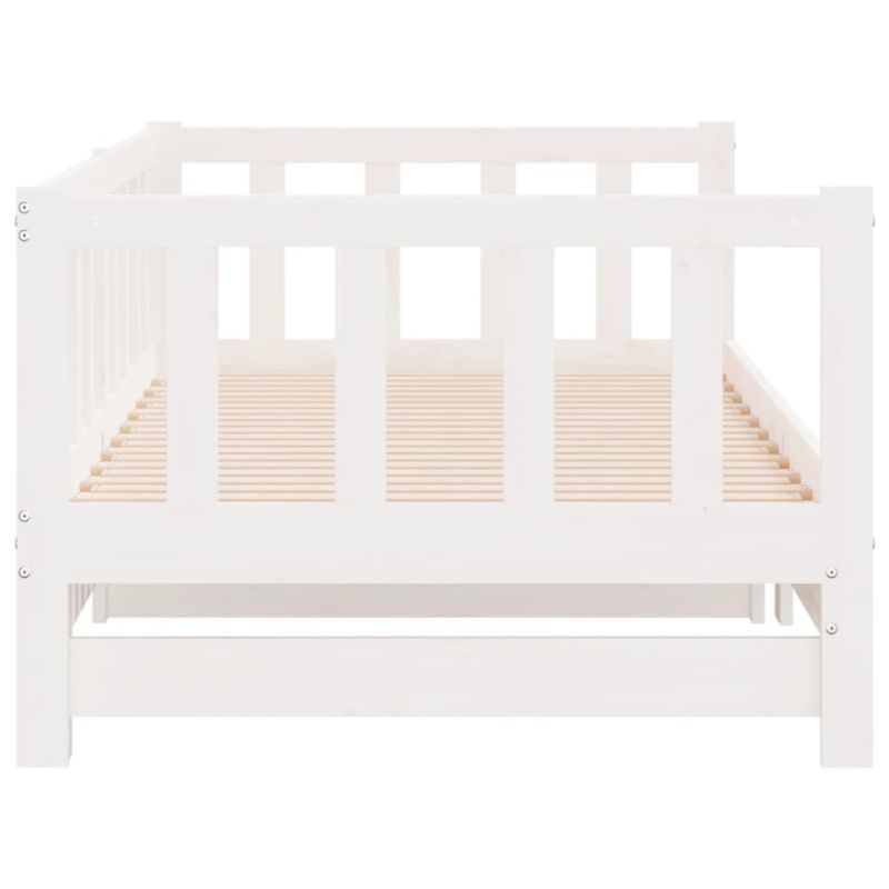 Това универсално дървено легло с изтеглящо разтегателно легло може да се използва като легло във вашата спалня и също така пасва идеално като диван във вашата всекидневна. Масивна борова дървесина: Масивното борово дърво е красив естествен материал. Боровата дървесина има прави шарки, а възлите придават на материала характерния му рустик вид. Това легло за гости е изработено от масивна борова дървесина, по-стабилно и издръжливо.Дизайн с ламели: Решетъчната основа осигурява по-добра циркулация на въздуха, за да се запази матракът свеж за по-дълго време, като подобрява капацитета на леглото по отношение на теглото и осигурява стабилност.Лесна употреба: Това легло е много удобно за използване и не изисква пружини или основа. Просто поставете матрака отгоре и се насладете на спокоен сън или време за почивка!Разтегателно диван легло: Това дървено дневно легло може да се използва като диван през деня или като легло през нощта, осигурявайки бързо решение за настаняване на нощуващи гости, като същевременно пести пространство. Добре е да се знае:Матраците не са включени в това легло. Ние предлагаме разнообразна селекция от матраци. Можете да проверите нашия магазин за подходящи матраци.