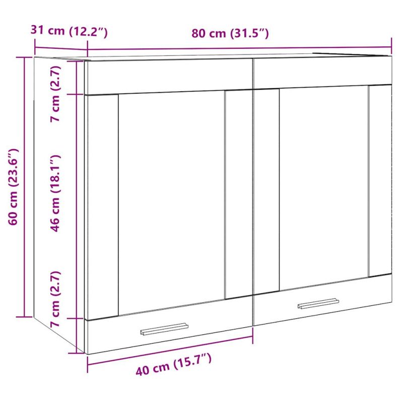 Висящ стъклен шкаф "Lyon", дъб Artisan, 80x31x60 см, инженерно дърво