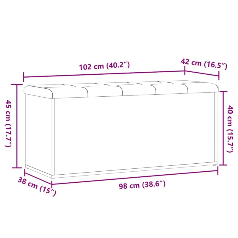 Тази пейка за съхранение, предназначена както за сядане, така и за съхранение, със сигурност ще привлече вниманието в интериора на вашия дом. Издържлив материал: Инженерната дървесина е с изключително качество с гладка повърхност и се отличава със здравина, стабилност и устойчивост на влага.Достатъчно място за съхранение: Пейката за коридор има голямо място за съхранение за организиране на дрехи, играчки, възглавници, книги или други лични вещи.Удобно място за сядане: Насладете се на върховния комфорт с интегрираната дебело подплатена възглавница на седалката, когато седите върху нея.Стабилни панти: Поддържащите панти са достатъчно здрави, така че капакът да може да бъде оставен отворен и тогава имате свободни ръце, за да подредите вещите си.Функционална употреба: Пейката е идеална за използване като пейка за обувки в коридора или пейка за съхранение в хола. Максимално 110 кг на седалка.
