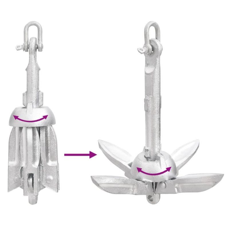 Направете пътуването си по водите по-леко със сгъваемата котва. Здрави материали: Изработена от горещо поцинкован чугун, котвата е трайна, износоустойчива, устойчива на корозия и може да се използва дълго време.Дизайн с 4 щипки: 4-те щипки на котвата имат добър контакт със земята, като пясък, трева или кал, което кара вашия плавателен съд да остане на място, осигурявайки ви сигурно и безопасно изживяване.Заключване при завъртане: Това заключване при завъртане поддържа метилите стабилни в разгънато положение за нула време. Освен това котвеното въже или котвената верига могат лесно да бъдат прикрепени към отвора.Преносима котва: Благодарение на своята сгъваема функция и компактен размер, котвата за лодка е лесна за съхранение и пренасяне. Можете бързо да я опаковате в раницата или чантата си за лодка и да я вземете със себе си на следващото си водно приключение.Широко приложение: Котвата за захващане е подходяща за различни малки лодки като платноходки, лодки, рибарски лодки, каяци, канута и гребни лодки.
